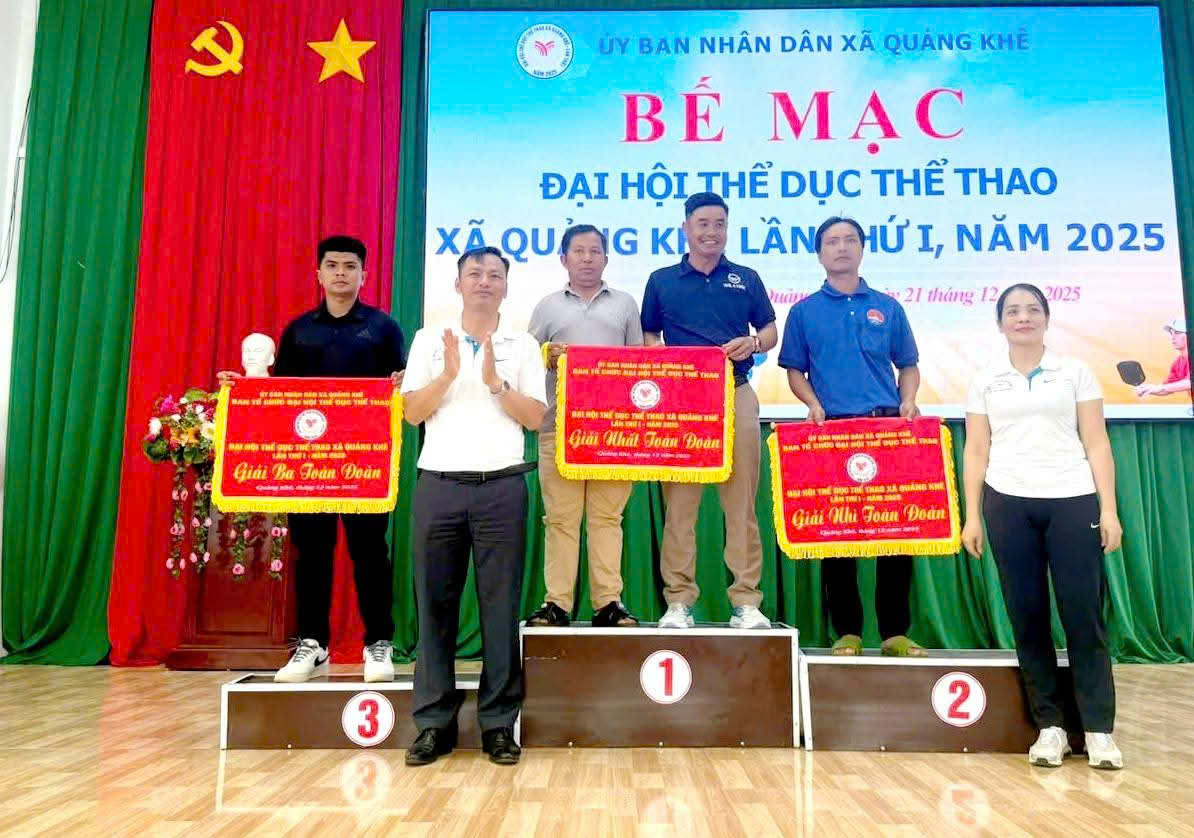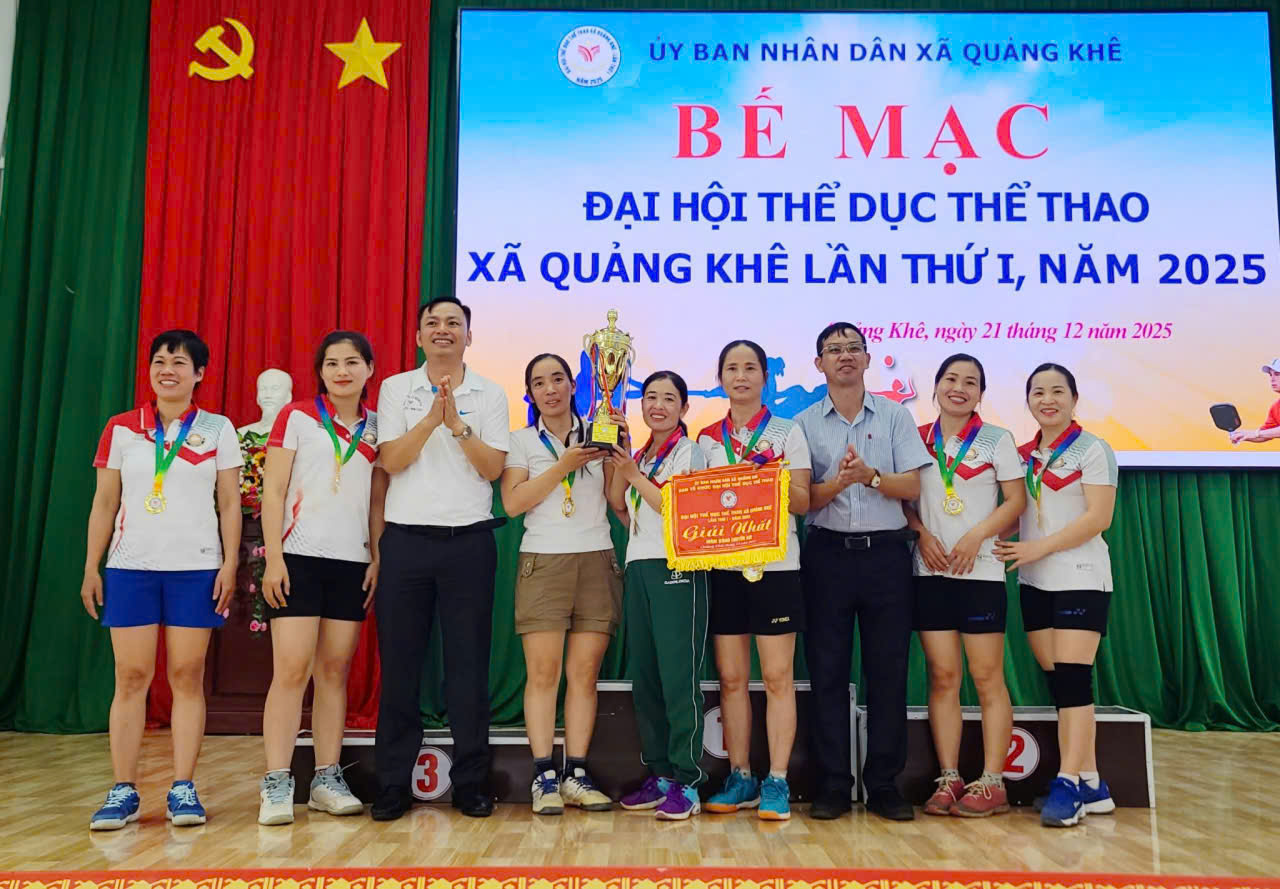 Đại hội Thể dục Thể thao xã Quảng Khê lần thứ I năm 2025 khép lại trong niềm phấn khởi, tự hào, thể hiện tinh thần thể thao đoàn kết – trung thực – cao thượng, tạo khí thế thi đua sôi nổi, góp phần thực hiện thắng lợi các nhiệm vụ phát triển kinh tế – xã hội của địa phương trong giai đoạn mới.