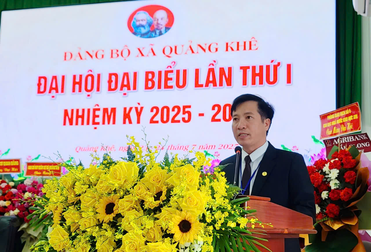 Phát biểu khai mạc Đại hội, TUV, Bí thư Đảng ủy, Chủ tịch HĐND xã Quảng Khê Vũ Tiến Lư nhấn mạnh, Đại hội đại biểu Đảng bộ xã lần thứ I, nhiệm kỳ 2025 - 2030 là sự kiện chính trị trọng đại, có ý nghĩa to lớn đối với định hướng phát triển của xã Quảng Khê trong giai đoạn mới.