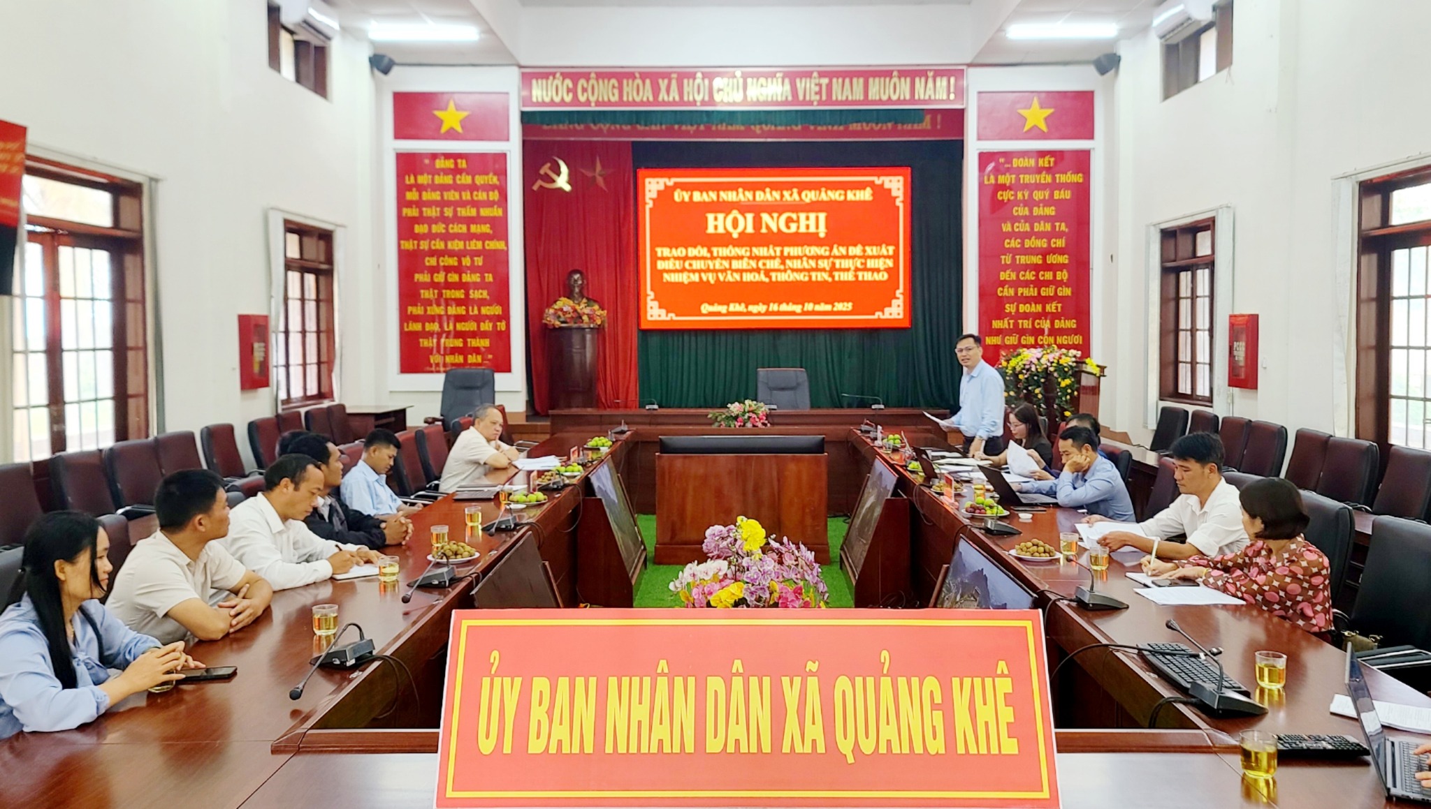 Sáng ngày 16/10/2025, tại Hội trường HĐND & UBND xã Quảng Khê, UBND xã Quảng Khê phối hợp với 3 xã thuộc huyện Đắk Glong cũ gồm Tà Đùng, Quảng Sơn và Quảng Hòa tổ chức hội nghị trao đổi, thống nhất phương án đề xuất điều chuyển biên chế, nhân sự thực hiện nhiệm vụ văn hóa, thông tin và thể thao. Hiện Trung tâm Văn hóa, Thể thao xã Quảng Khê có 08 biên chế, dự kiến sẽ được phân bổ, điều chuyển về 04 xã nhằm đảm bảo phù hợp với mô hình tổ chức bộ máy sau sáp nhập đơn vị hành chính, đáp ứng yêu cầu thực tiễn tại cơ sở. Việc thống nhất phương án điều chuyển biên chế, nhân sự không chỉ góp phần kiện toàn, sắp xếp lại đội ngũ cán bộ, viên chức theo hướng tinh gọn, hiệu quả, mà còn nhằm phát huy tối đa năng lực chuyên môn, nâng cao chất lượng hoạt động trong lĩnh vực văn hóa, thông tin và thể thao tại các địa phương. Qua đó, tạo điều kiện thúc đẩy phong trào văn hóa – thể thao cơ sở, phục vụ tốt hơn nhu cầu hưởng thụ văn hóa tinh thần của Nhân dân, góp phần xây dựng đời sống văn hóa lành mạnh, phát triển toàn diện.