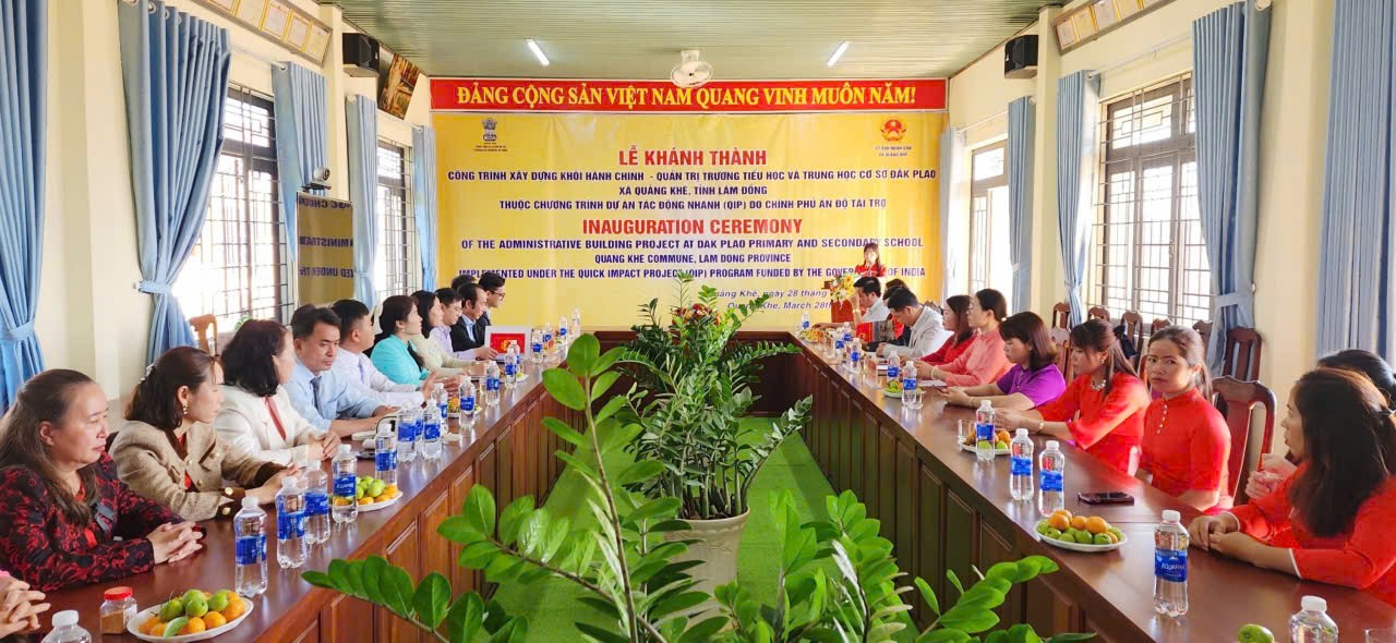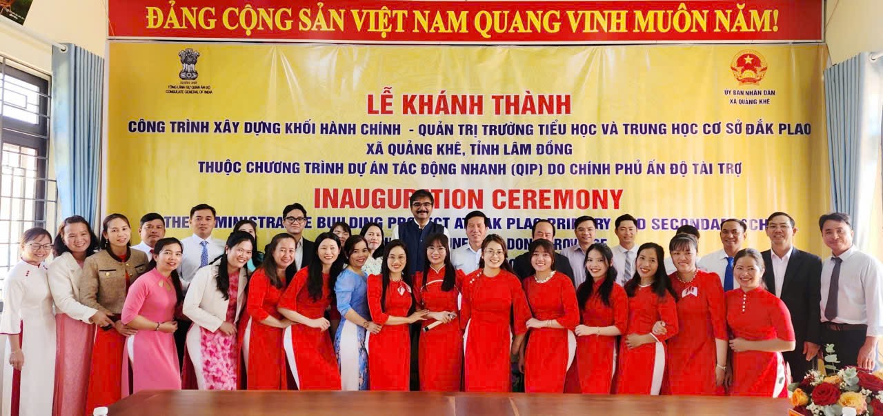 Sáng ngày 28/3/2026, tại Trường TH&THCS Đắk Plao, UBND xã Quảng Khê phối hợp với Tổng Lãnh sự quán Ấn Độ tại TP. Hồ Chí Minh tổ chức Lễ khánh thành Công trình xây dựng khối nhà hành chính – quản trị (nhà hiệu bộ) trong không khí trang trọng, phấn khởi. Đây là công trình có ý nghĩa quan trọng, góp phần hoàn thiện cơ sở vật chất, nâng cao chất lượng giáo dục trên địa bàn.