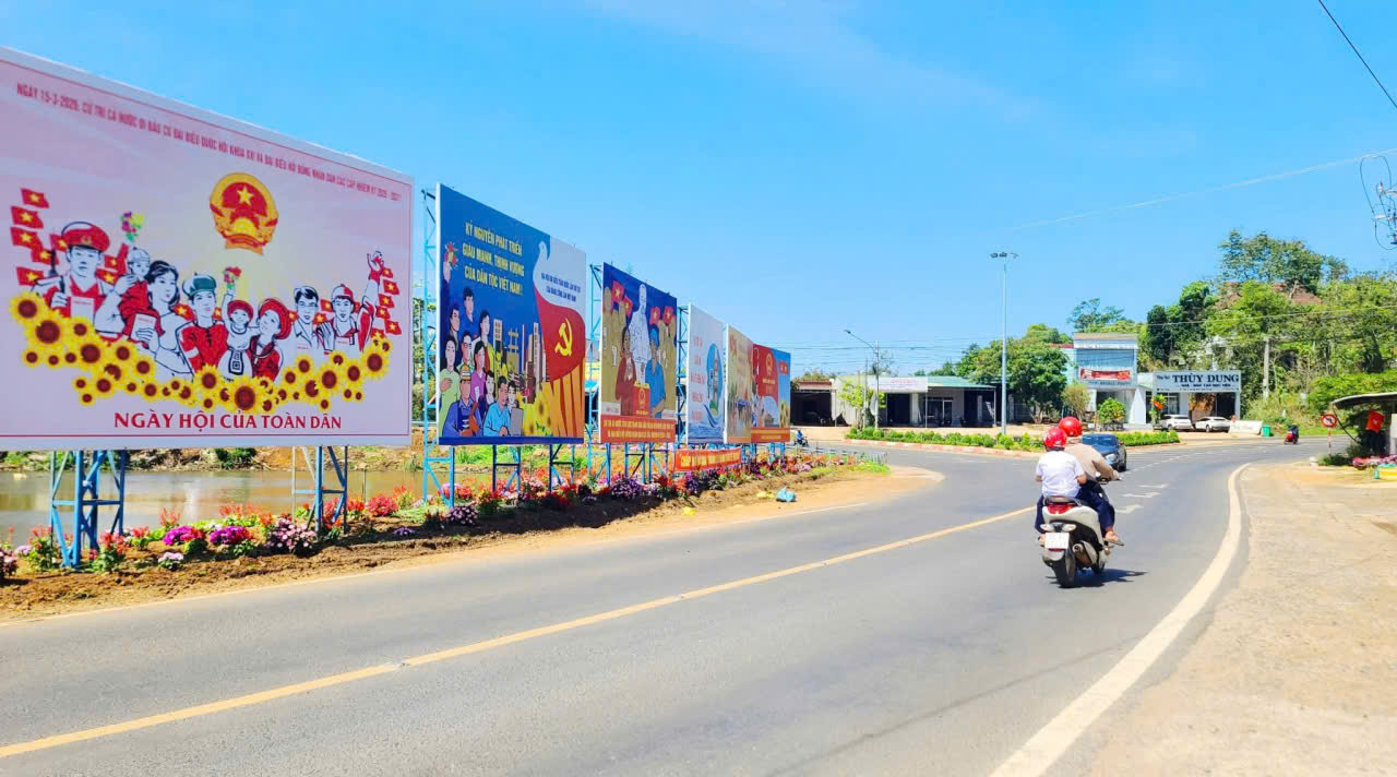 Đến thời điểm này, công tác tuyên truyền phục vụ bầu cử trên địa bàn xã được triển khai đồng bộ và rộng khắp. Theo đó, Trung tâm Dịch vụ tổng hợp xã đã tiến hành thay mới 9 cụm pano tuyên truyền, treo 300 lá cờ Tổ quốc và 55 phướn tuyên truyền tại các trục đường chính, khu trung tâm xã và những điểm đông dân cư. Nội dung tuyên truyền tập trung vào ý nghĩa, tầm quan trọng của cuộc bầu cử; quyền và nghĩa vụ của cử tri; cũng như tiêu chuẩn đại biểu Quốc hội và đại biểu HĐND các cấp. Cùng với hình thức tuyên truyền trực quan, xã Quảng Khê còn đẩy mạnh tuyên truyền trên các nền tảng mạng xã hội, đặc biệt thông qua trang Facebook “Quảng Khê Ngày Mới”. Tại đây, nhiều thông tin, hình ảnh, video về công tác chuẩn bị bầu cử, danh sách ứng cử viên, hướng dẫn quy trình bỏ phiếu và các hoạt động hưởng ứng Ngày hội bầu cử được đăng tải thường xuyên, thu hút đông đảo người dân theo dõi, chia sẻ. Qua đó góp phần lan tỏa thông tin nhanh chóng, giúp cử tri nắm bắt đầy đủ các nội dung liên quan đến cuộc bầu cử. Không chỉ dừng lại ở các hoạt động tuyên truyền của chính quyền, tại các thôn, bon trên địa bàn, người dân cũng tích cực hưởng ứng bằng việc treo cờ Tổ quốc trước nhà và dọc các tuyến đường liên thôn, tạo nên không khí trang trọng, rộn ràng. Nhiều khu dân cư còn chủ động chỉnh trang cảnh quan, vệ sinh môi trường, góp phần tạo diện mạo khang trang, sạch đẹp trước ngày bầu cử. Tại các khu vực bỏ phiếu, công tác trang trí khánh tiết cũng đang được hoàn thiện. Dưới sự chủ trì của Phòng Văn hóa - Xã hội, việc trang trí pano, khẩu hiệu, cờ phướn, bố trí không gian khu vực bỏ phiếu đã cơ bản hoàn thành, đảm bảo trang trọng, đúng quy định.