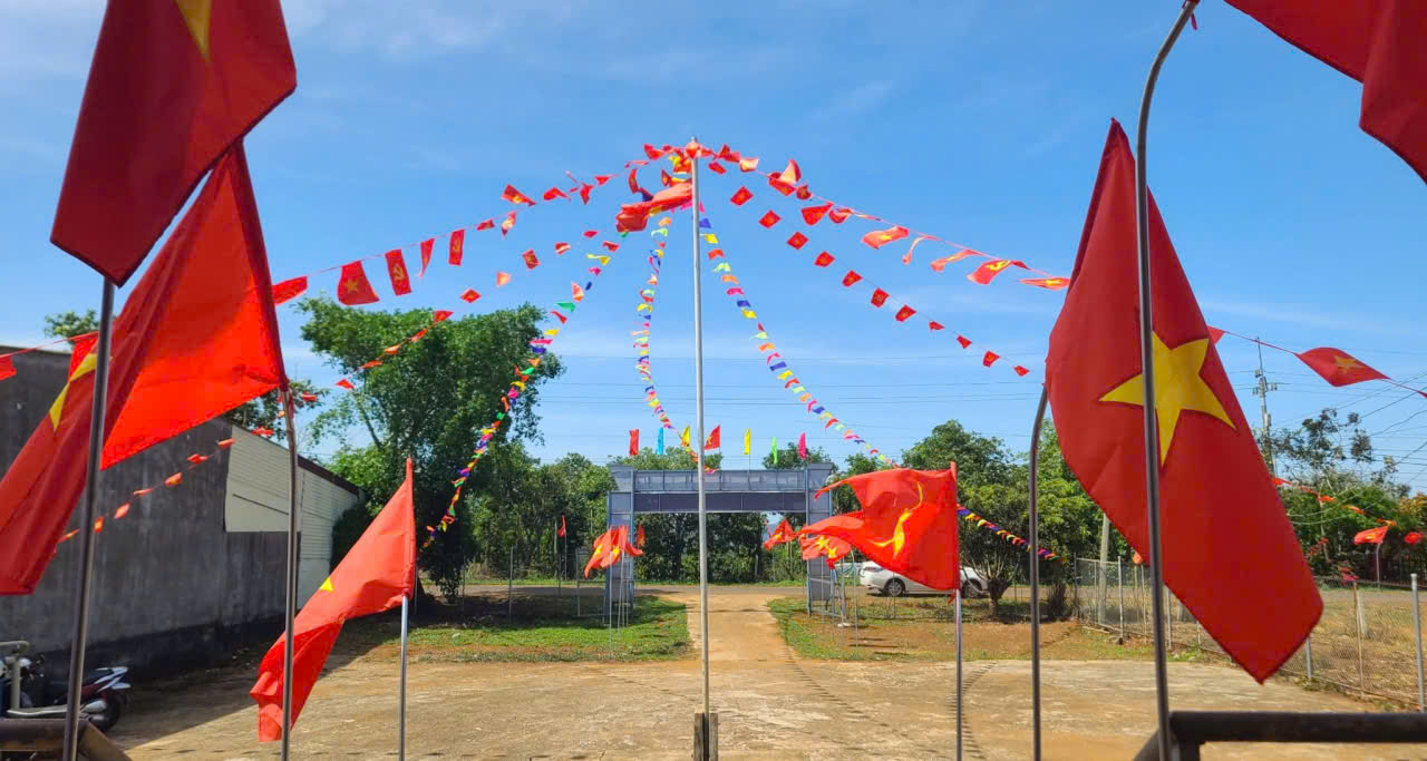 Hình ảnh: Trang trí cờ tại các thôn, bon trên địa bàn xã