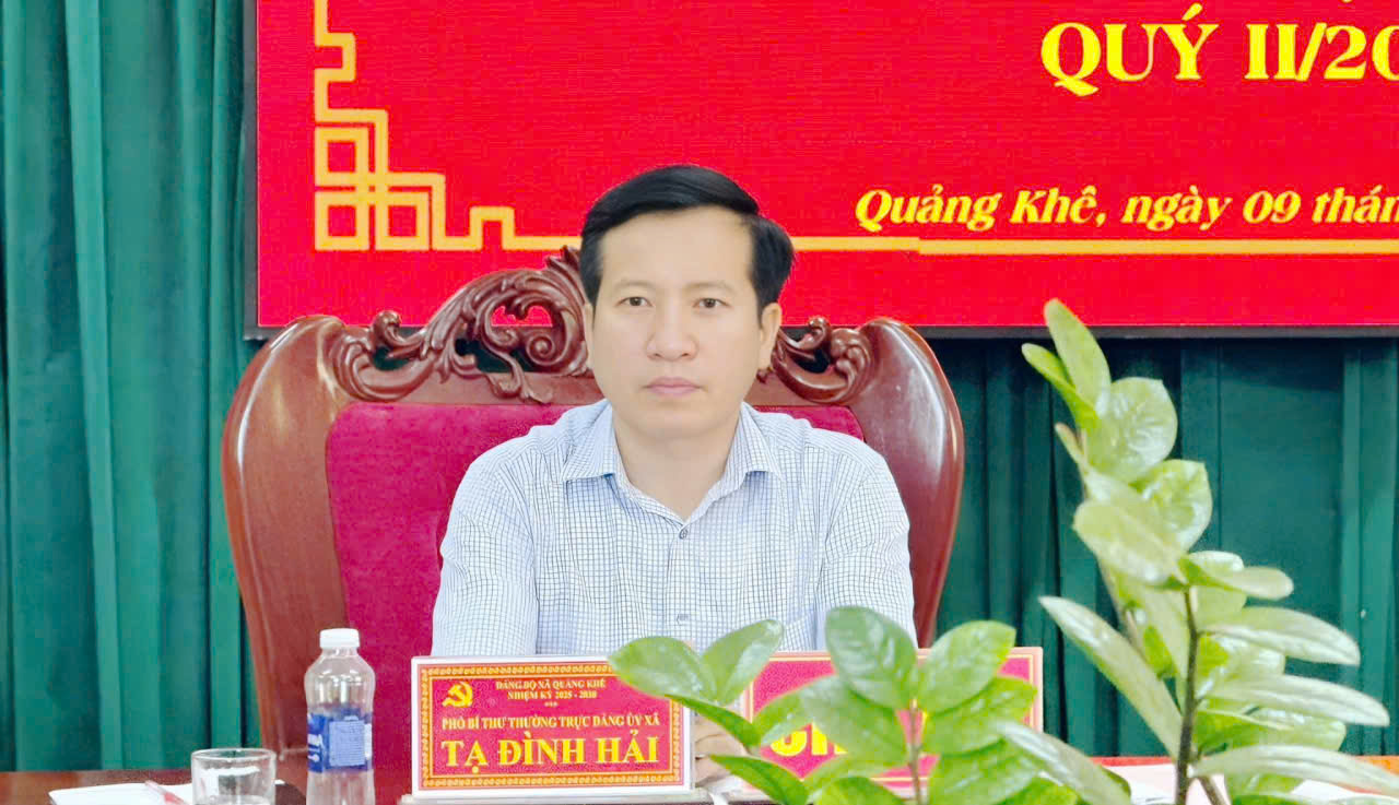 Chiều ngày 09/4/2026, Đảng ủy xã Quảng Khê tổ chức Hội nghị sơ kết công tác xây dựng Đảng và hoạt động của các Ban Chỉ đạo tôn giáo, Ban chỉ đạo thực hiện Nghị quyết 57/NQ-TW, Ban công tác 35 quý I/2026, triển khai nhiệm vụ trọng tâm quý II/2026. Đồng chí Tạ Đình Hải - Phó Bí thư Thường trực Đảng ủy xã chủ trì hội nghị.